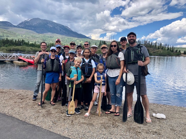 We have family reunions with our children and their families every couple years. In 2019 we went to Breckenridge, Colorado and all but one of the children and their families were there. Here we are getting ready to go canoeing, which was great even though it was pouring rain by the time we got back to the dock.